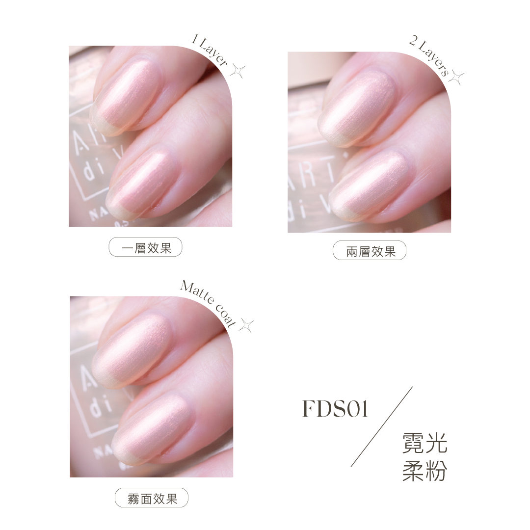 例如:飾底硬甲油打底+FDS01或是GL01、GL02等疊擦系列